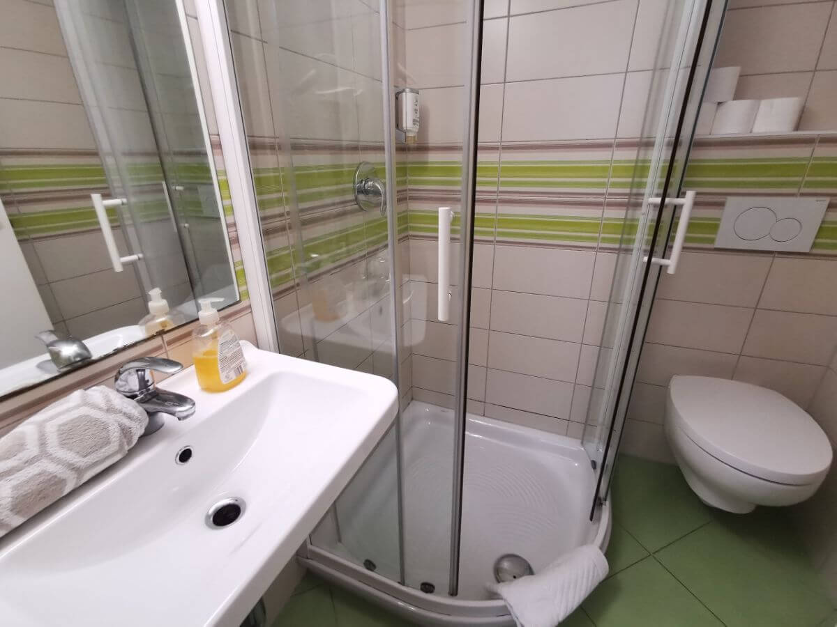 Our double rooms with shared bathroom are all equiped with a double bed and a TV with international channels. Budget friendly room also has two shared bathrooms and one extra toilet so usually there is no problem with morning rush. In the summer months there is a ventilator available in the room.